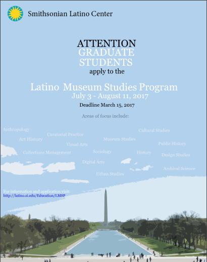 The Smithsonian Latino Center is now accepting applications for its 2017 Latino Museum Studies Fellowship Program. Application deadline is March 15, 2017!