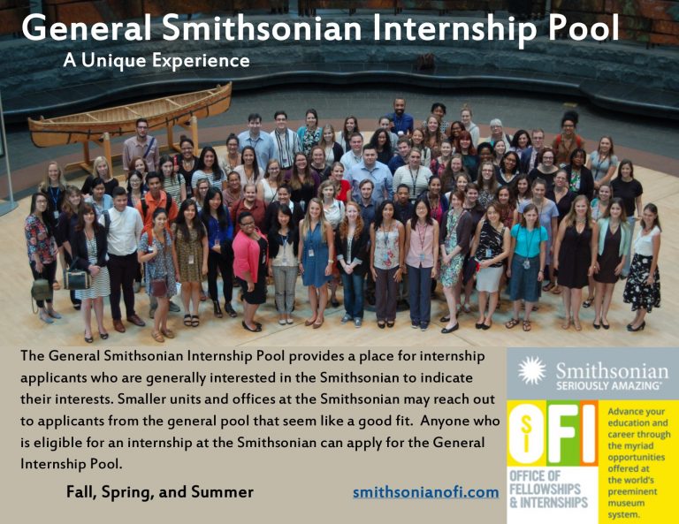This is a list of all the current internship opportunities at the Smithsonian, sorted by unit. Use this list to get a better sense about where you might like to pursue an internship at the Smithsonian, click the links to dig deeper. You can also view all of the Smithsonian’s internships with their deadlines by clicking here.