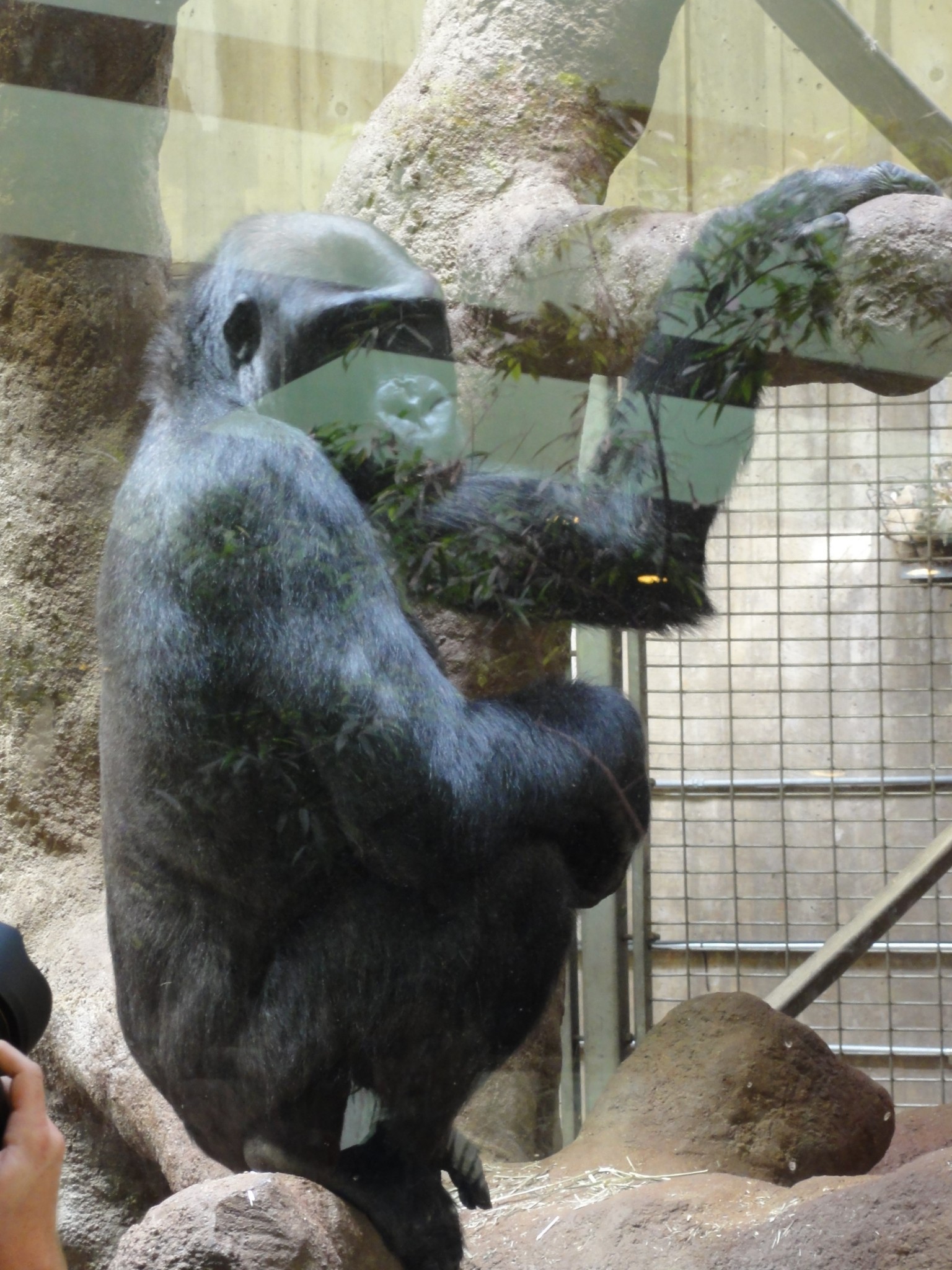 We learned what gorillas eat (plants) and what they don’t eat (humans). Male gorillas may be aggressive with each other to declare their dominance but no serious harm is inflicted when they fight. They mostly thump their chests and throw grass – like my eighth grade gym teacher, but not as scary. Have you ever wondered why gorillas have carnivorous looking teeth when they are herbivores? Do you want to know how a keeper gives a gorilla an injection? Why do male gorillas look like they have Mohawks? Get to the Great Ape House and find out!